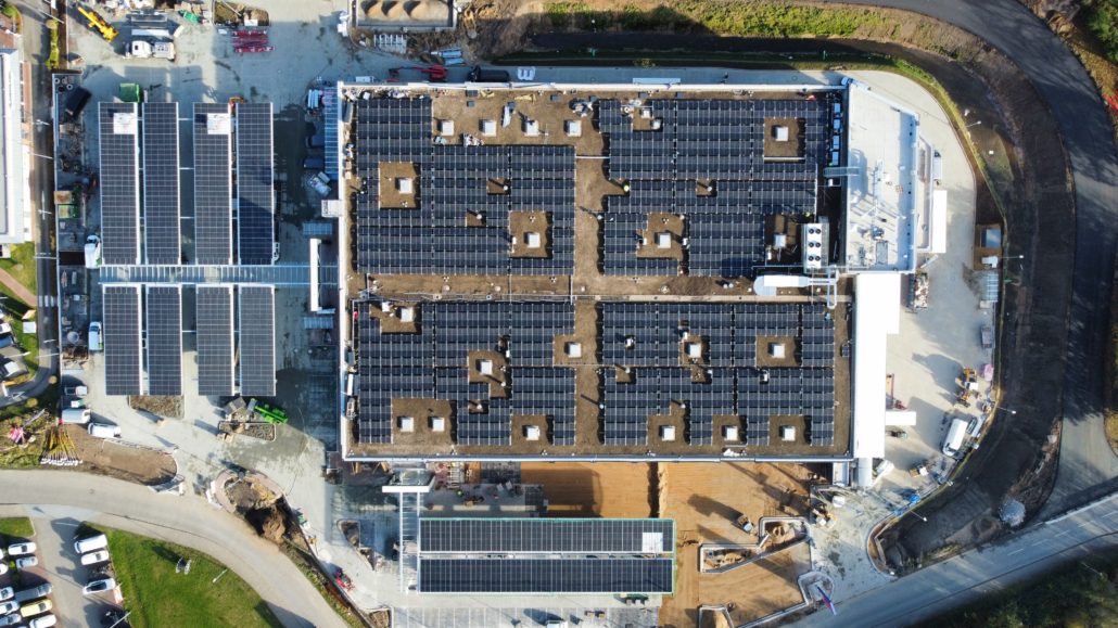 Die Montage erfolgte auf einer speziellen Ost-West-Unterkonstruktion, die direkt auf das Gründach gestellt wurde und geringfügig ballastiert wird. Für die Technik auf dem Dach werden zudem spezielle PV-Shelter eingesetzt, die einzelnen Komponenten, wie Wechselrichter und Überspannungsboxen, dauerhaft schützen.